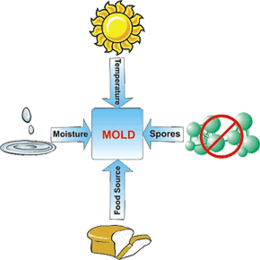 - Mold begins to grow when it is exposed to a wet surface & has shelter as well as a food source.